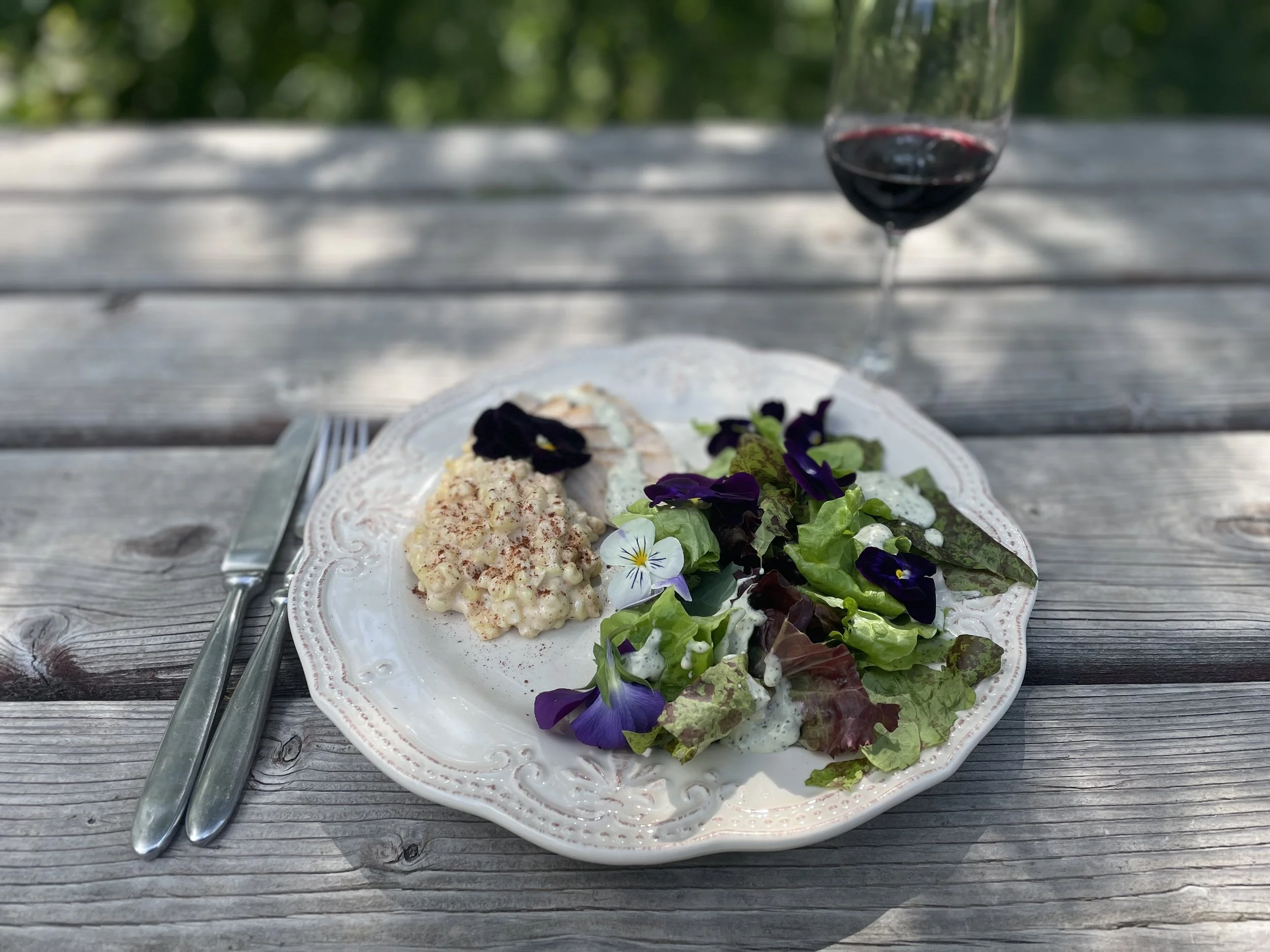 Dandelions have also become a spring staple food in our home. These little greens are some of the very first things to spring to life once the winter snows recede in the warm sunshine. Dandelion greens as well as stinging nettles (another hated weed) and asparagus are three of the most nutrient dense foods on the planet! These foods come up first in the spring so that you can rebuild your vitamins and mineral stores that were depleted in the winter months. We add the dandelion greens to each salad we make. We harvest extra to be dried and used in our super green powder which we add to soups and smoothies all year long. If you’ve ever dined with us in the spring chances are pretty high you were served a fresh salad with dandelion greens and violets sprinkled on top.